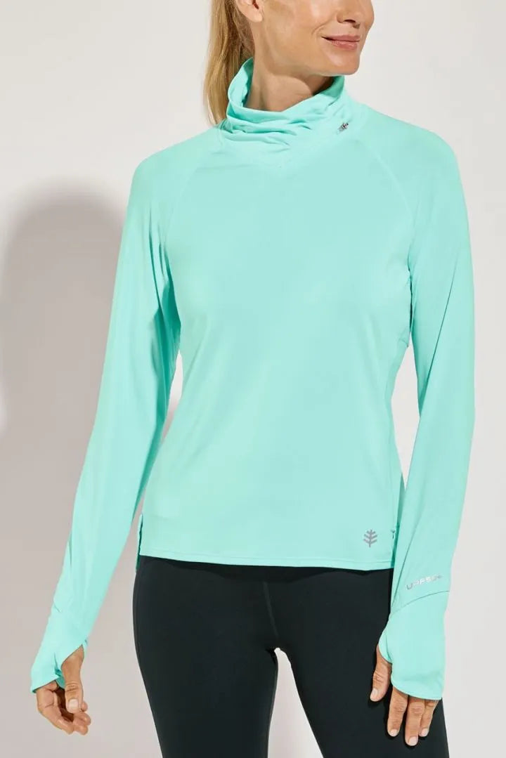 T-shirt anti-UV à capuche - Oasis en vert clair pour femme, léger et UPF 50+, idéal pour le sport en extérieur.