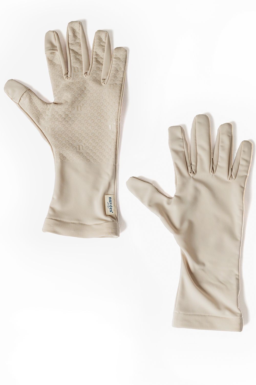 Robe anti-UV beige UPF50+ pour femme, idéale pour la protection solaire en ville ou à la plage.