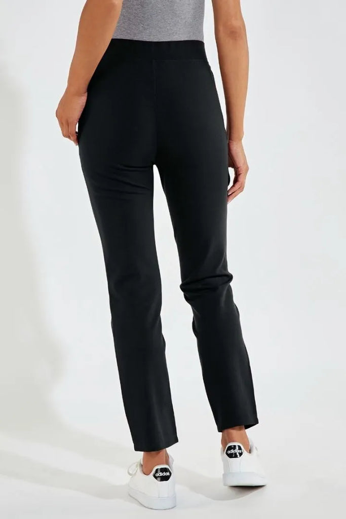 Diese UV Hose für Damen wurde entwickelt, um Sie auf Reisen oder unterwegs zu begleiten. Dank des Elasthans im UV-Schutzgewebe ist es äußerst bequem. Dies gibt Ihnen den ganzen Komfort einer Leggings, aber im Stil einer Hose. Es hat einen elastischen Bund, Nahttaschen mit Reißverschluss, eine mittelhohe Passform und eine Länge, die bis zum Knöchel reicht. Sein schmeichelhafter Look und seine bequeme Seite machen ihn zu Ihrem Lieblingspartner!