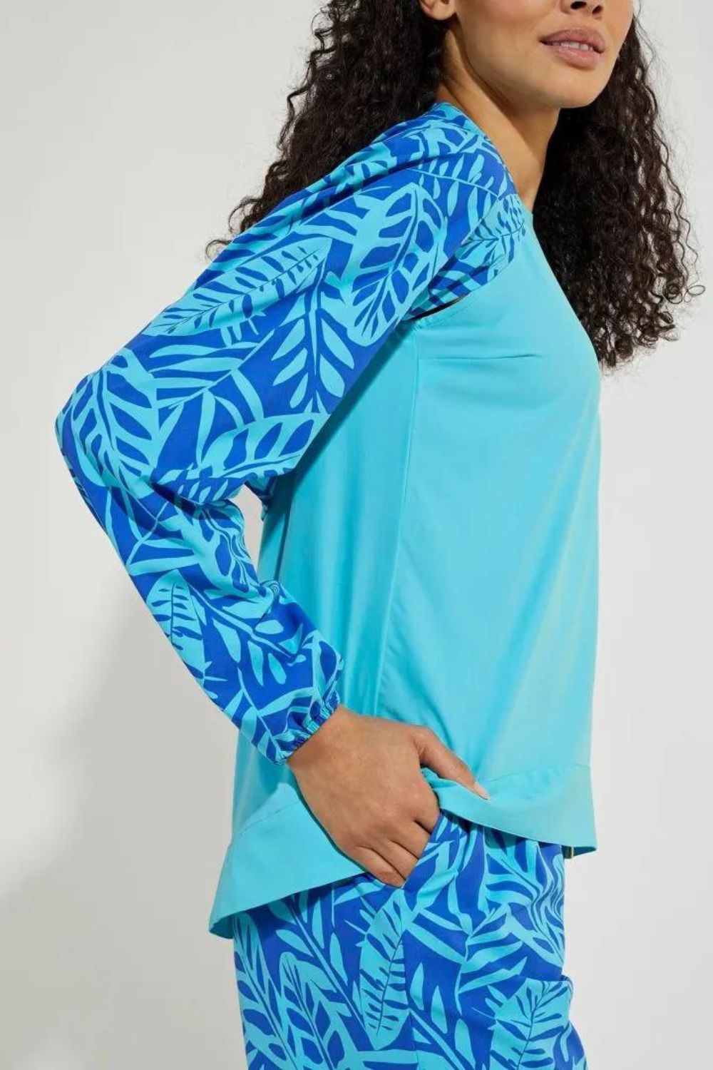 - Aire™ Stoff: Luxuriöser, seidiger Stoff mit wunderschönem Faltenwurf, federleicht und atmungsaktiv mit integriertem Stretch.
