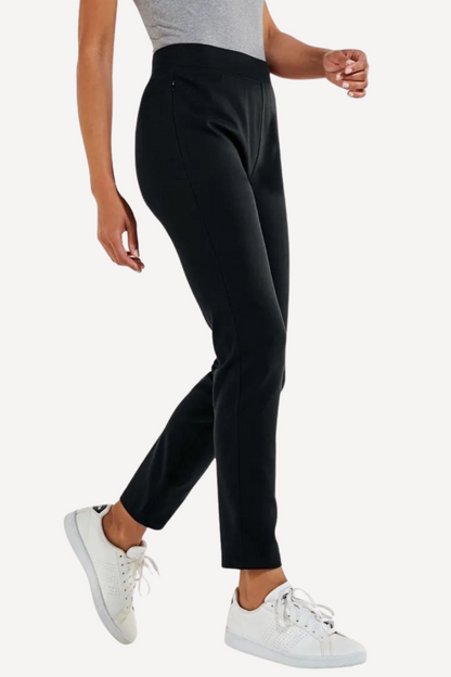 These UV protective trousers for women are made to accompany you on your travels or on the go. It is ultra comfortable thanks to the elastane present in the sun protective fabric. This will give you all the comfort of a leggings, but with the style of pants. It features an elastic waist, zipped seam pockets, a mid-rise fit and a length that drops to the ankle. Its flattering look and its comfortable side will make it your favorite partner!