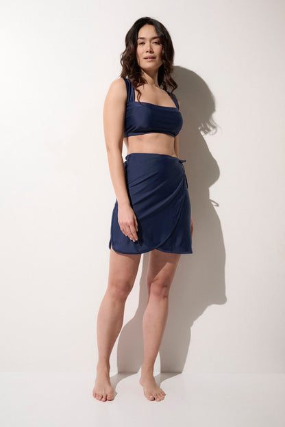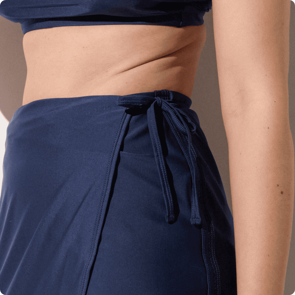 A stylish and practical wrap skirt, ideal for protecting your upper legs from the sun while enjoying your days at the beach or pool.