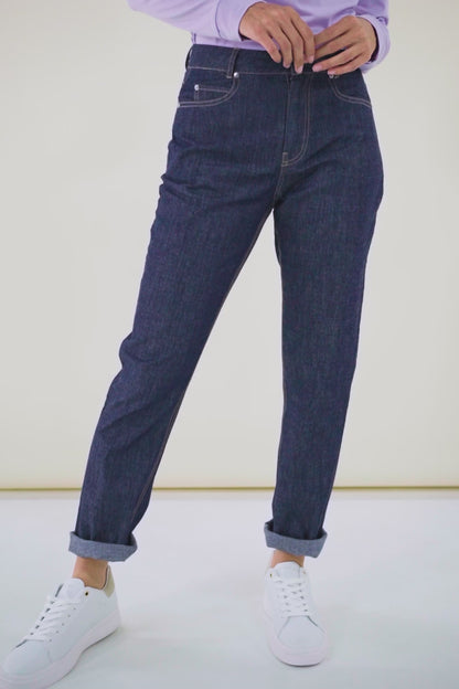 The 100% cotton fabric (50% of which is recycled cotton) is 3 times lighter than conventional jeans, making them feel light and breathable, even in the hottest weather. With their straight cut, these UV-resistant jeans are THE essential companion for all your summer outings.