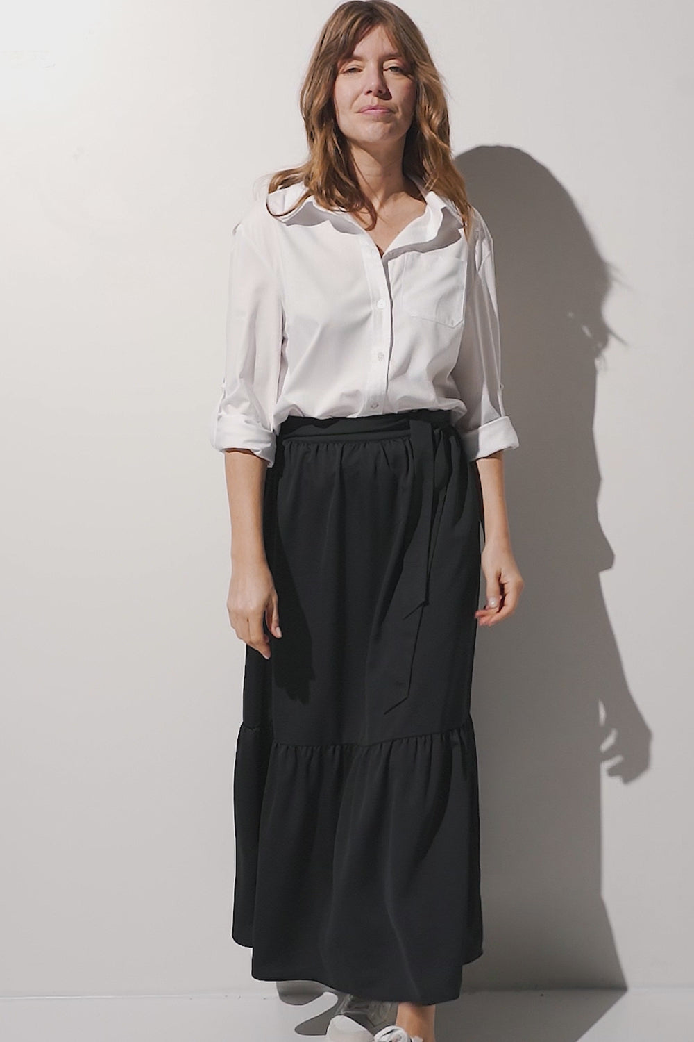 Parfaite pour flâner en ville ou pour profiter d'un moment de détente au soleil, cette jupe longue allie féminité et confort tout au long de la journée.