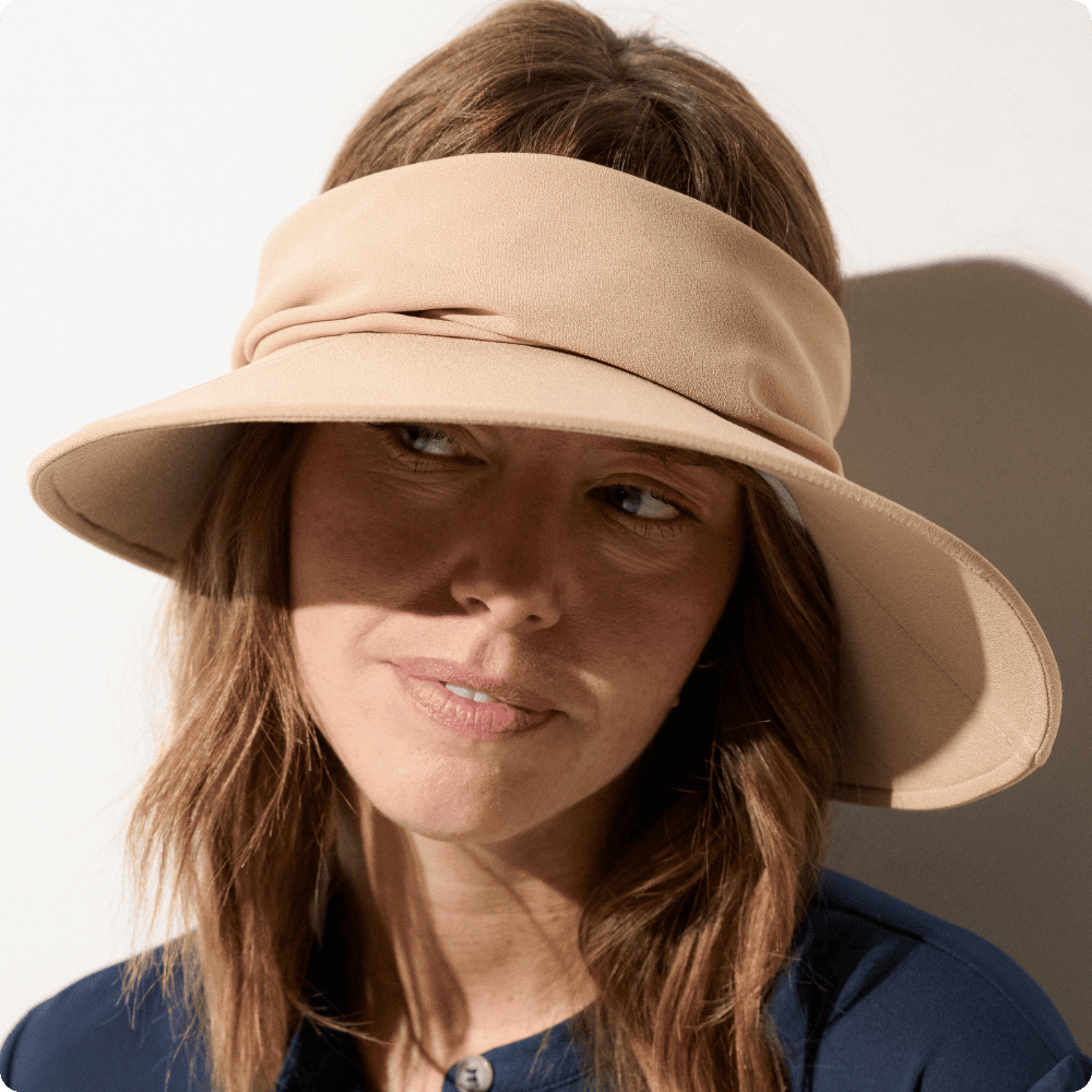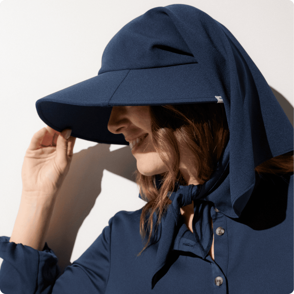 Perfect voor een dagje strand of een wandeling in de zon, deze zonneklep beschermt uw gezicht en oren op elegante wijze.