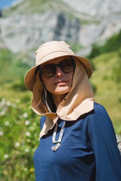 Avec son bord de 8 cm, ce bob anti-UV protégera votre visage et vos oreilles des rayons du soleil. Pour une protection anti-UV maximale de votre cou et de votre nuque, attachez rapidement son panneau de protection solaire amovible à l'aide de ses boutons-pression.